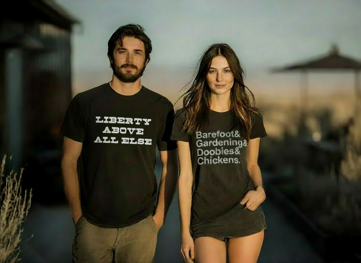 Our mission is simple: design shirts that reflect the values that matter most. Personal liberty. Faith. Hard work. Community. Traditions worth preserving. And that quiet-but-strong independence that comes from growing your own food, raising your family with intention, and living life without asking permission.